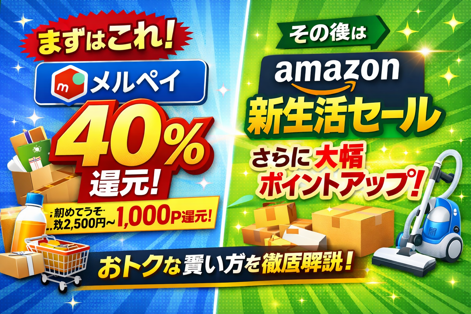 ・メルペイで確実に回収したあと、必要ならAmazon新生活セールの1万円条件も狙う