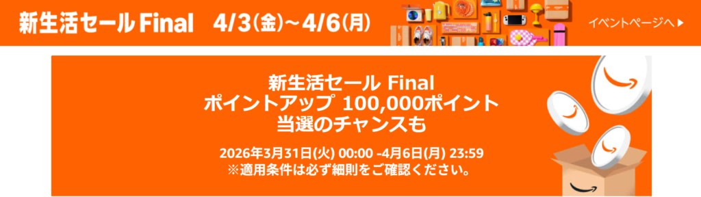 さらにAmazon側では「新生活セール Final」も開催されています。